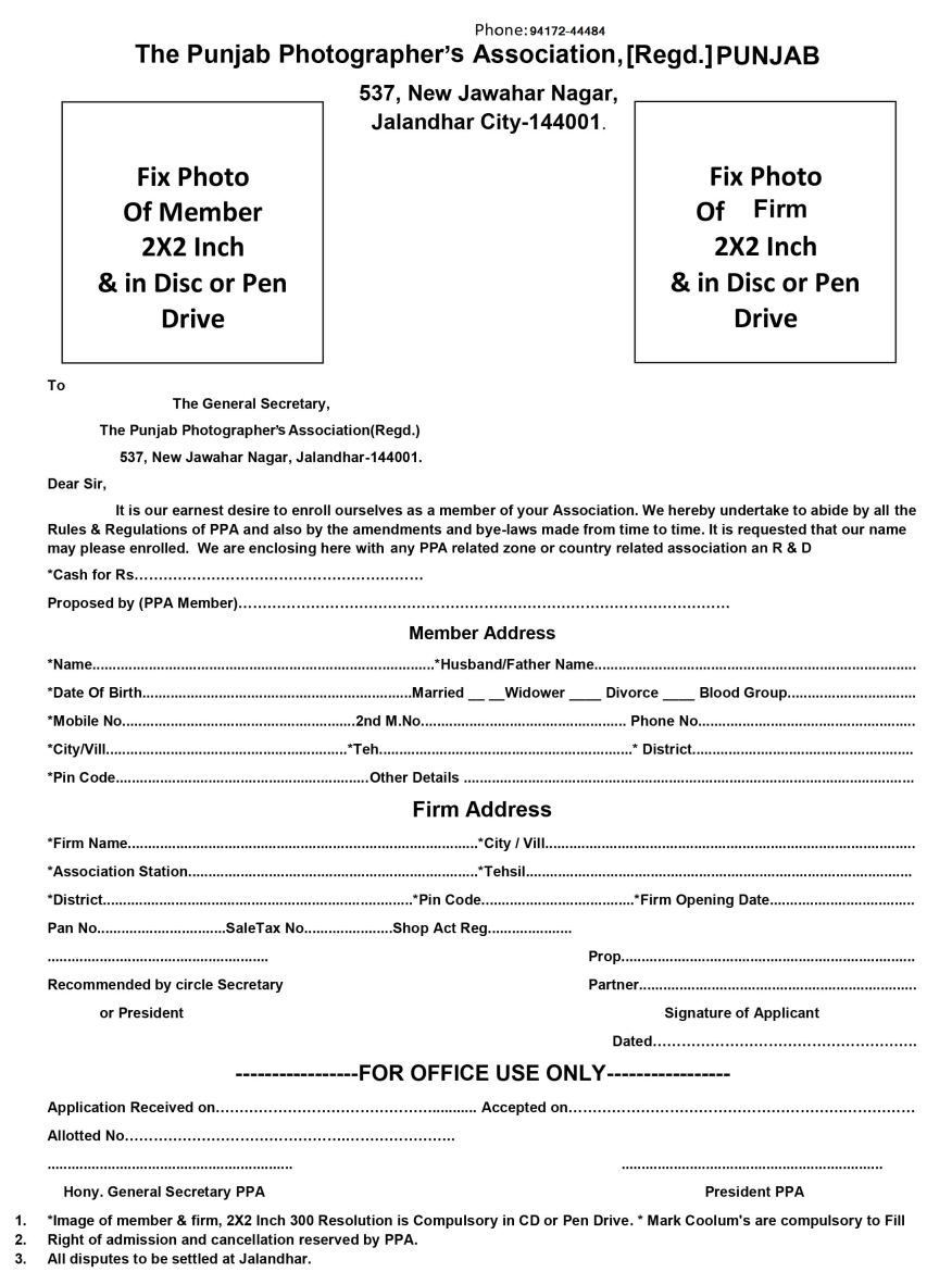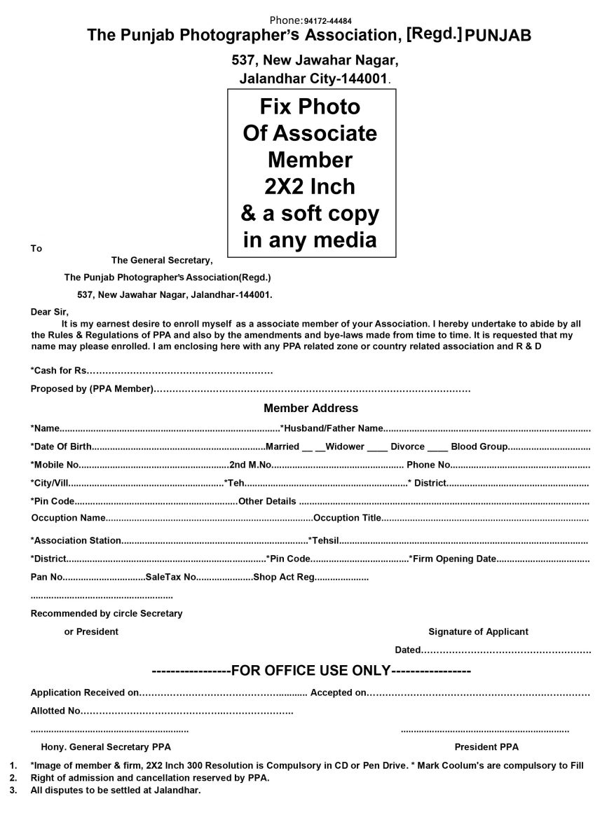 Regd. Form PPA Member
